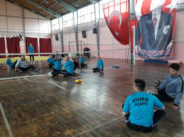 Alaplı Anadolu Engelliler Gençlik ve Spor Kulübü (ALGES) Başkanı İsmail Korkut, Alaplı Kapalı Spor Salonu'nda son antrenmanlarını yaptıklarını söyledi. Karabük ve Muğla'da düzenlenen 1 ve 2 etap müsabakaları sonucunda A Grubu'nu lider tamamlayarak finallere katılmaya hak kazandıklarını ifade eden Korkut, "İlçemizde 15 bedensel engelli arkadaşımızla kurduğumuz oturarak voleybol takımımız Fethiye'de düzenlenen 2. etap müsabakaları sonucunda 4'te 4 yaparak A Grubu'nu Ereğli Belediyesi'nin önünde averajla lider tamamladık. 11-17 Mayıs tarihleri arasında Adana'da düzenlenecek olan finaller öncesi son antrenmanımızı yaptık. Finalleri bizimle birlikte Karadeniz Ereğli Belediyesi, Adana Umudun Işığı ve Karabük Gençlik Spor kaldı. Bizim hedefimiz Oturarak Voleybol 1. Ligi'ni şampiyon olarak tamamlayarak kupayı Alaplı'ya getirmek istiyoruz. Oyuncularımız finallere hazır durumda centilmence mücadele ederek kupayı kazanmak istiyoruz" dedi.
