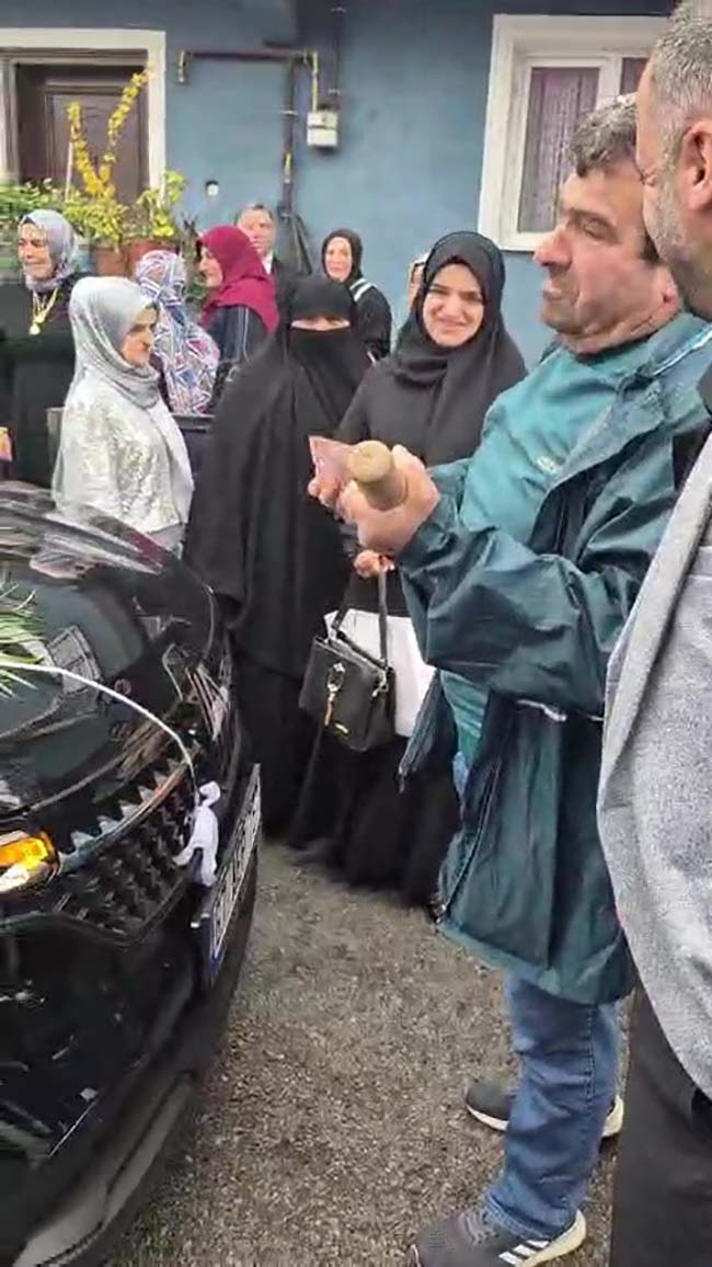 Zonguldak’ta gelin alma merasimi sırasında sopayla arabanın yolunu kesen damadın arkadaşı, aldığı bahşişi çocuklara verdi.