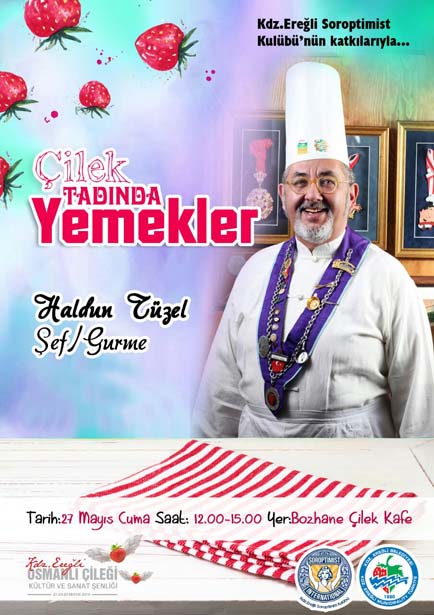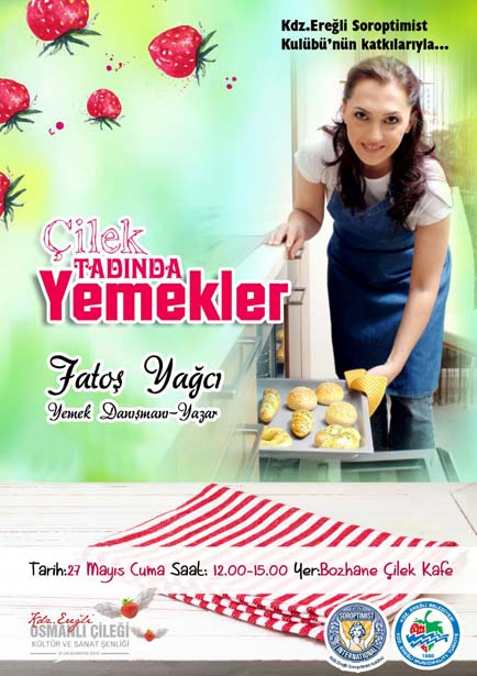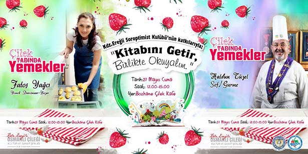 Kdz Ereğli Soroptimist Kulübü, Osmanlı Çileği Kültür ve Sanat Şenliği etkinlikleri kapsamında kitap okuma etkinliği düzenleyecek. "Çilek Tadında Kitap Okuma Etkinliği" başlığı altında gerçekleştirilecek etkinliğe Yemek Danışmanı-Yazar Fatoş Yağcı ve Şef-Gurme Haldun Tüzel de katılacak.