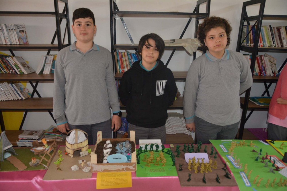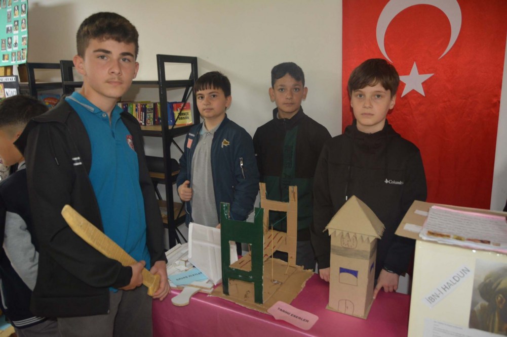 Birbirinden güzel çalışmaların yer aldığı sergi de büyük ilgi gördü. Öte yanda sergi ile öğrenciler ziyaretçilerine önemli bilgiler aktardı. Sergi ile ilgili açıklama da bulunan Okul Müdürü Atalay Karakırık ; “Öğrencilerimizi yıl boyunca sosyal bilgiler dersinde öğretmenlerimizin öğrencilere yaptırdığı materyaller için sergi düzenledik. Öğrencilerimiz de öğrendiklerini sunmuş oldular” dedi.