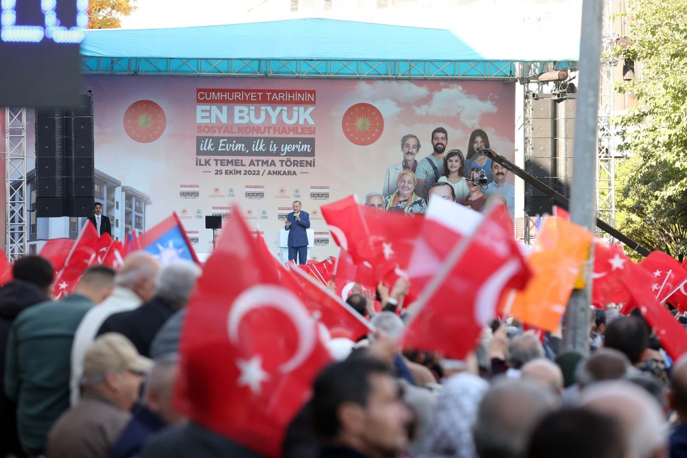 "Dünyadaki krizlerin, hayat pahalılığı olarak tezahür eden olumsuz etkilerini de ancak ortadan biz kaldırırız. Dikkat ederseniz Türkiye'yi ekonomik bakımdan geliştirecek, insanlarımızın sıkıntılarına çözüm getirecek programı, hazırlığı, kararlılığı olan tek siyasi kadro biziz. İnşallah 28'inde Türkiye Yüzyılı'nı Ankara Kapalı Spor Salonu'nda açıklıyoruz. Gelişmiş ülkelerin dahi ciddi sıkıntılarla karşı karşıya olduğu bir dönemde Türkiye'nin büyüyerek, güçlenerek yoluna devam edebilmesi bu sayededir. İnşallah 2023'te milletimizin desteğini tekrar alarak Türkiye Yüzyılı'nın inşasını sürdüreceğiz. Bir kez daha tarihimizin en büyük konut kampanyasının ülkemize hayırlı olmasını diliyorum. "