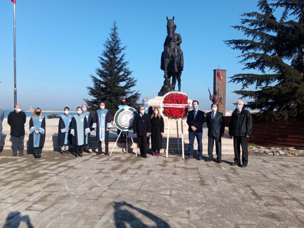 Zonguldak'ta Tıp Bayramı kapsamında Tabipler Odası tarafından Atatürk heykeline çelenk konuldu.