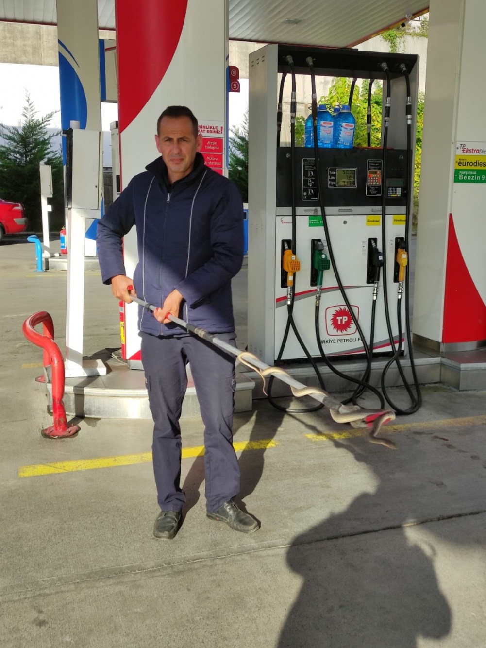 Alınan bilgilere göre Akaryakıt istasyonunun işçi soyunma odasındaki yılanı gören çalışanlar itfaiye ekiplerine haber verdi. Olay yerine gelen itfaiye ekipleri yaptıkları çalışma sonrasında uzunluğu yaklaşık 2 metre olan yörenin yılanı olan Bozyörük yılanını yakaladı. Yılan daha sonra doğal ortamına salındı.