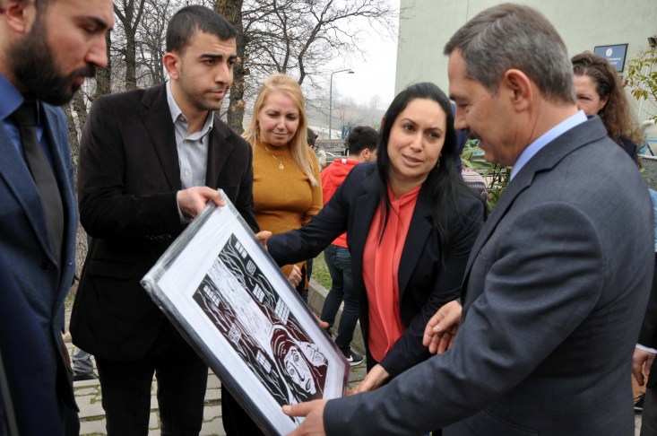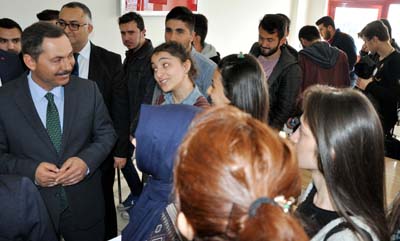 Başkan Uysal'a öğrencileri dinlediği ve okulun çevre düzenlemesi için teşekkür eden MYO Müdürü Aysel Memiş de Başkan Uysal'a bir öğrencinin yaptığı tabloyu hediye etti.