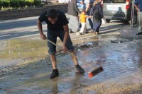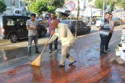 İş makinesinin kazdığı yerin altında bulunan borunun hasar görmesiyle sokak adeta ırmağa dönüştü. Yokuşun tepesinde patlayan su borusu kentin en işlek caddelerinden olan Cumhuriyet Caddesi'ne süratli bir şekilde aktı. Sokağın etrafında bulunan apartmanlarda yaşayanlar ise mahsur kaldıkları evlerinde olayı meraklı şekilde izledi.