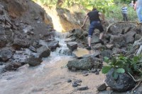 Zonguldak'ta yol çalışması yapıldığı sırada patlayan bir su borusu sokağı ırmağa çevirdi.