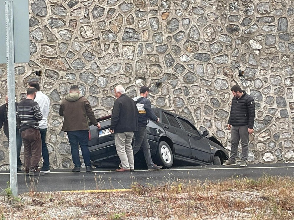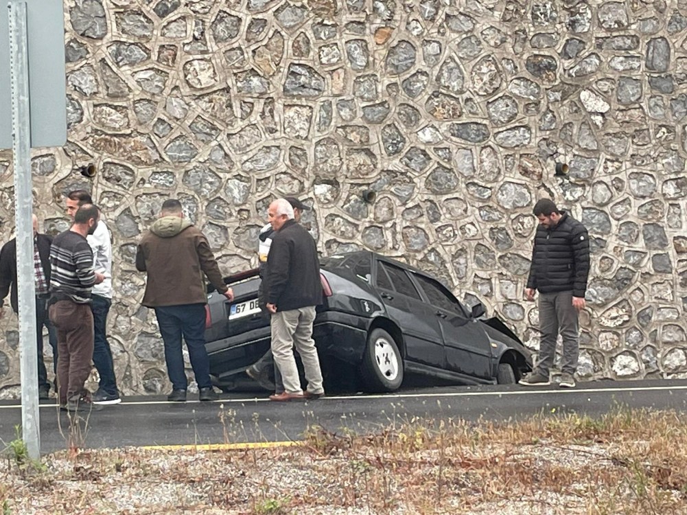 Zonguldak Ereğli karayolu üzerinde meydana gelen trafik kazasında otomobil su kanalına düştü. Kazada sürücü hafif yaralandı.