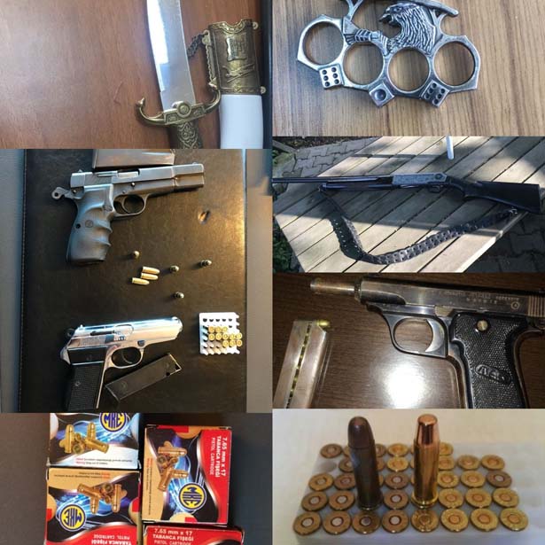 Operasyon kapsamında yapılan ev ve iş yerlerindeki aramalarda ise çok sayıda ruhsatsız tabanca, 1 adet av tüfeği, çok sayıda mermi, kesici alet ele geçirildi.