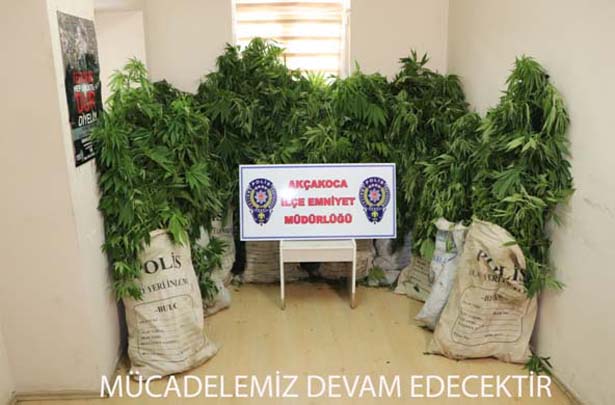 "Düzce İHA Şube Müdürlüğü ile koordineli olarak yapılan çalışmada tarladan 806 kök Hint keneviri ele geçirilmiştir. Malum şahısların yapılan ev aramalarında 57 gr. uyuşturucu madde ele geçirilmiştir.