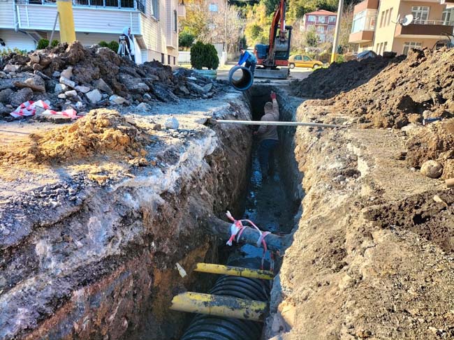200 metre uzunluğunda ve 500 mm çapındaki Koruge borular kullanılarak yapılan bu hat, çevre binaları ve alt yapıyı olumsuz etkileyen su baskınlarını engelleme amacını taşıyor.