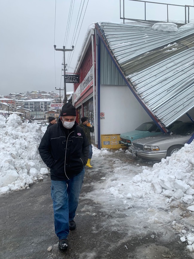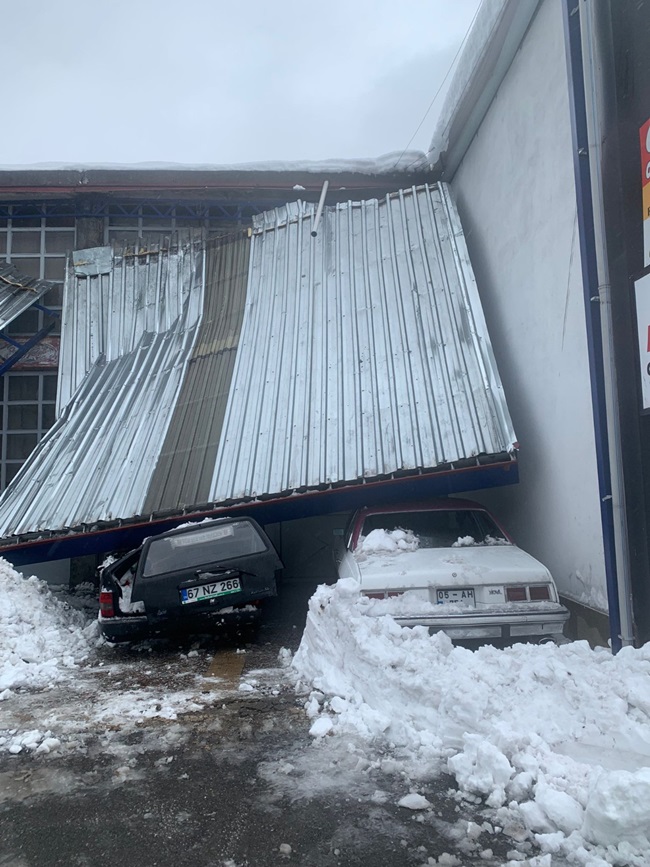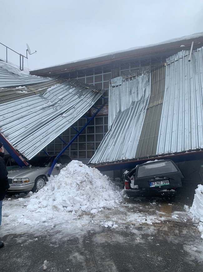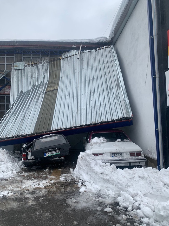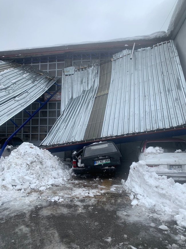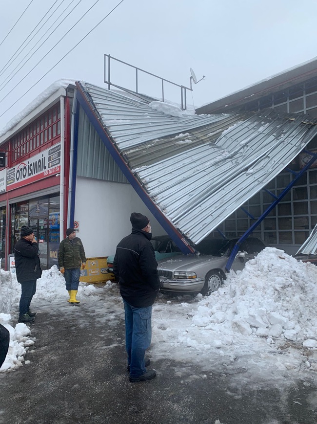 Alınan bilgilere göre; yaklaşık 5 gündür yağan yoğun kar yağışı sonrasında olumsuz olaylar peş peşe geldi. Birçok iş yerinin çatısı çökerken Kışla sanayi sitesinde de bir iş yerinin sundurması çöktü. Çöken sundurmanın altında kalan 3 araçta maddi hasar meydana geldi. Sabaha karşı meydana gelen olayda yaralanan olmazken, iş yerine gelen dükkan sahibi gördüğü manzara karşısında şoka girdi. Sundurmanın kaldırma çalışmasına başlanırken, araçlarda oluşan hasar için rapor tutulduğu öğrenildi.