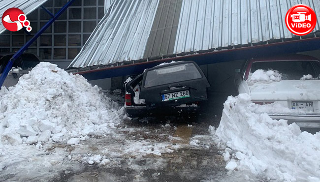 Karadeniz Ereğli ilçesi Kışla Sanayi Sitesinde iş yerinin sundurması çöktü. Yaşanan kazada 3 araç hasar gördü.
