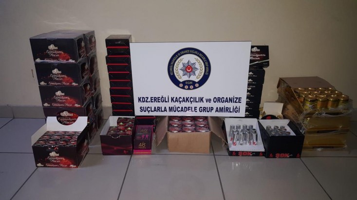 Zonguldak'ın Ereğli ilçesi Kaçakçılık ve Organize Suçla Mücadele büro amirliği ekipleri şüphe üzerine durdukları araçta cinsel içerikli 919 paket macun, sprey ve çikolata ele geçirildi.