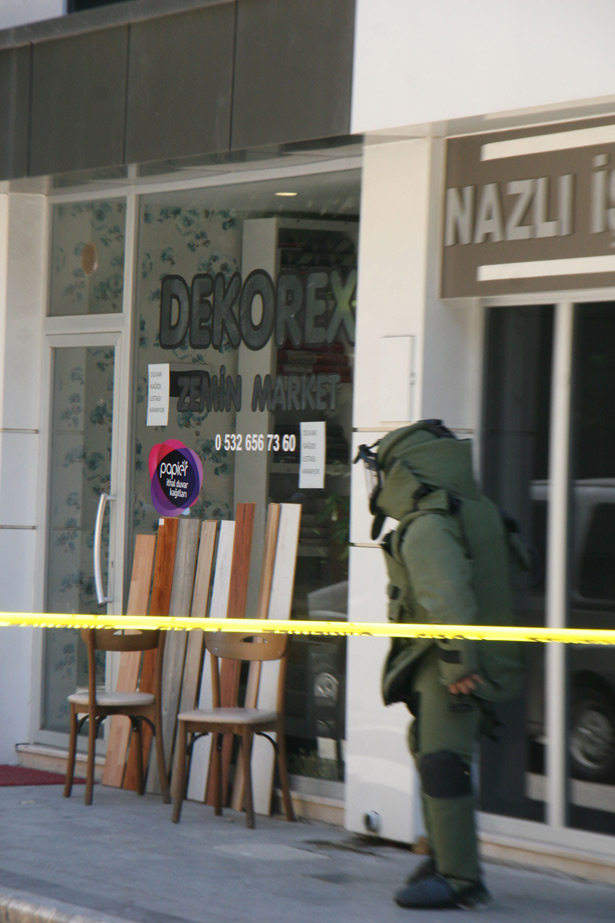 Edinilen bilgilere göre, Cedidiye Mahallesi Köprü Sokak üzerinde bulunan Nazlı İş Merkezi kapısının girişinde ağzı plastik kelepçe ile bağlanmış ve içerisinden kan sızan poşet, polisi alarma geçirdi. Olay yerine gelen ekipler ilk olarak çevre güvenliğini aldılar. Sonrasında olay yerine gelen bomba uzmanı ekip giydiği özel kıyafetle şüpheli paketin yanına yaklaştı ve elindeki maket bıçağı yardımıyla poşeti açtı. Poşetten büyükbaş hayvan derisi çıktı. İş hanında ve çevrede bulunan vatandaşlar rahat bir nefes aldı. Hayvan derisi olay yerine çağrılan belediye ekipleri tarafından bulunduğu yerden alındı.