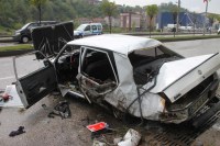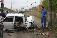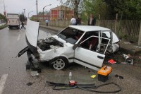 daha sonra da elektrik direğine çarptı. Kazada hurdaya dönen otomobilde bulunan