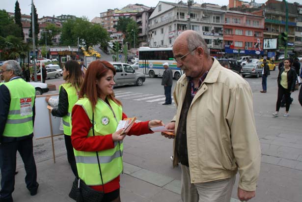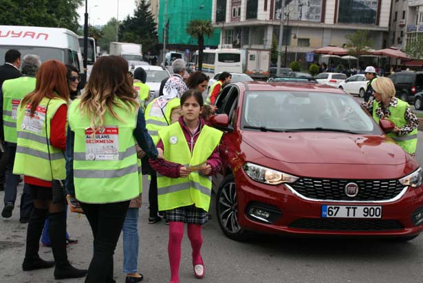 Kdz Ereğli'de Trafik ve Karayolları Güvenliği Haftası dolayısıyla özel bir rehabilitasyon merkezinin öğretmen ve öğrencileri, ambulanslara trafikte yol verilmesi için bilinçlendirme amaçlı broşür dağıttı.