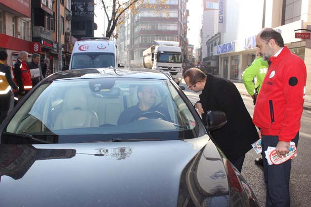 7 Aralık Acil Sağlık Hizmetleri Haftası etkinlikleri çerçevesinde sürücülere trafikte ambulanslara öncelik verilmesini istediler.