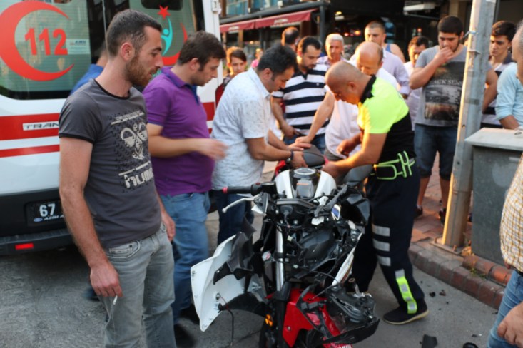 Olay İlçeye bağlı Erdemir Caddesi üzerinde alış veriş merkezi önünde meydana geldi. Alınan bilgilere göre 59 DJ 559 plakalı motosiklet sürücüsü İ.D. (44) İstanbul yol ayrımı istikametine giderken önce Alış veriş merkezi otoparkına dönüş yapan M.E. (35) idaresinde ki 67 TN 461 plakalı otomobile çarptı. Direksiyon hakimiyetini kaybeden motosiklet sürücüsü D., daha sonra park halinde ki otomobile çarparak motosikletten fırladı. Olay yerine gelen sağlık ekiplerinin ilk müdahalesini yaptığı İ.D. daha sonra özel hastaneye kaldırılarak tedavi altına alındı. Sürücünün vücudunda kırıklar olduğu ve özel hastanede yapılan müdahalenin ardından da Ereğli Devlet Hastanesine sevk edildiği öğrenildi. Kazada motosikletin çarptığı otomobil sürücüsü M.E. ise ifadesi alınmak üzere polis merkezine götürüldü.