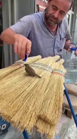 Cep telefonu ile diğer arkadaşları tarafından kaydedilen anlarda, kuşa su veren Muhtar Savaş Karaca’yı arkadaşları tarafından alkışlandı.
