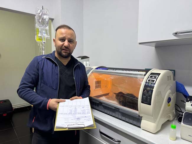 Hayvan severler tarafından sokakta yaralı ve kanamalı halde bir kedi bulundu. Durumu fark eden hayvan severler, vakit kaybetmeden kediyi veteriner kliniğine götürdü. Burada veteriner hekim Gökmen Koç tarafından muayene edilen kedi, acilen ameliyata alındı. Yapılan müdahalede kedinin karnındaki dört yavrudan üçünün hayatını kaybettiği belirlenirken, bir yavru canlı olarak kurtarıldı ve kuvöze alındı. Koç, yavru kedi için sütanne aradıklarını ifade etti.