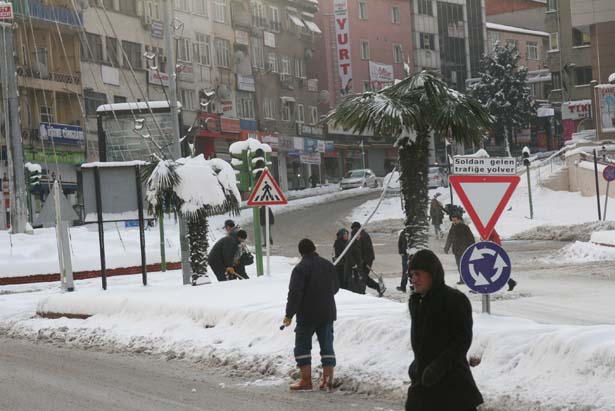 Belediye ekipleri kar temizleme çalışmaları kapsamında çarşı içinde küreme çalışması yaptı. Temizlik işleri müdürlüğü ekiplerinin yanı sıra, esnaf da kaldırımlarda biriken karları kürüdü. Belediye ekipleri, Devrim Bulvarı'nda bulunan ağaç ve süs bitkilerinin üstünde biriken karları düşürmek için özel yapılmış sırıklar kullandı.