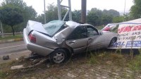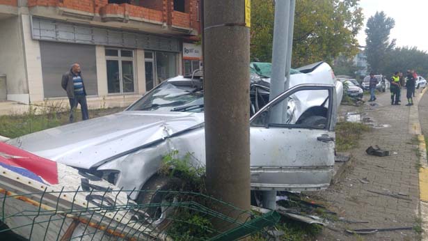 kontrolünü kaybetmesi sonucu yön tabelasının bulunduğu direğe çarparak