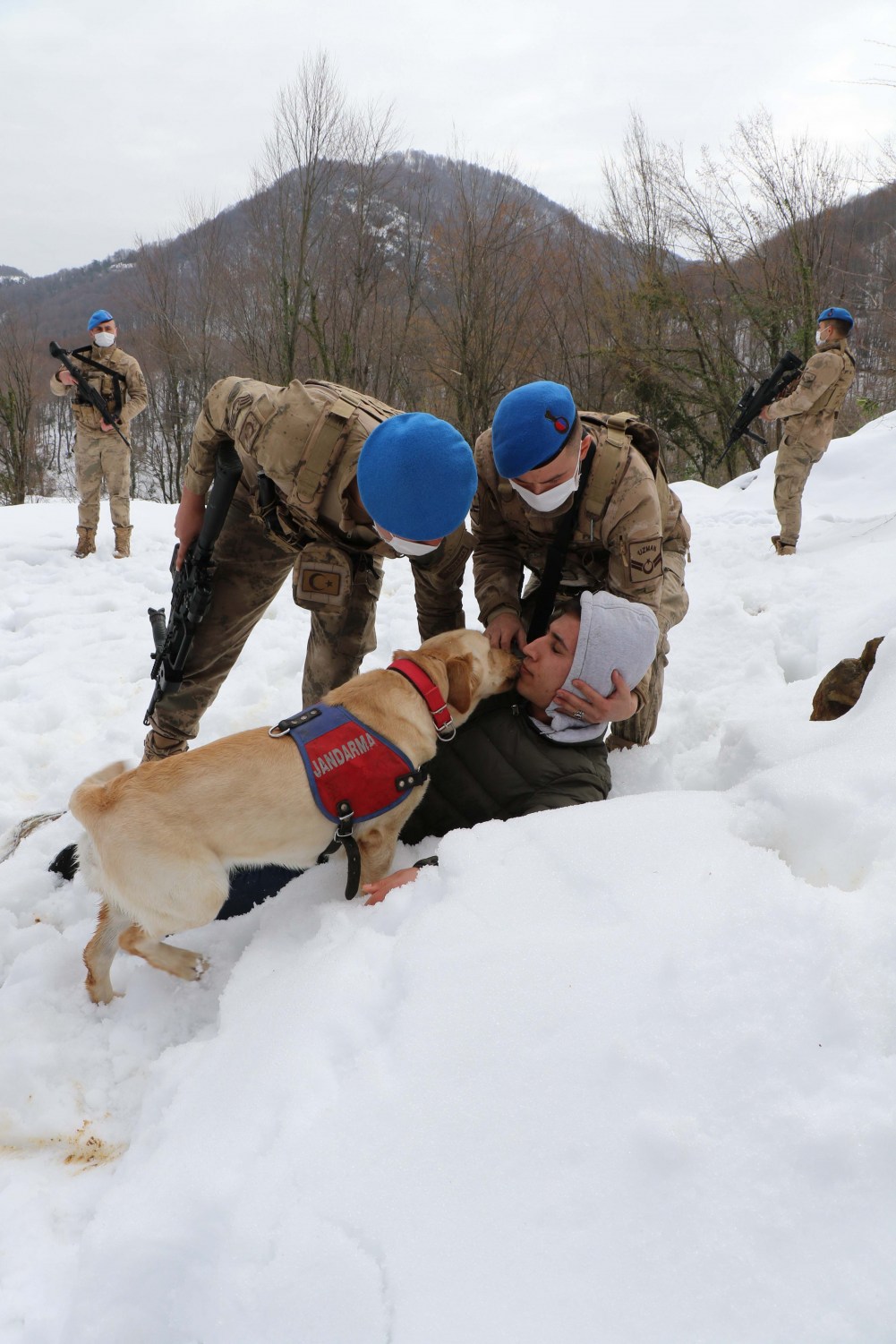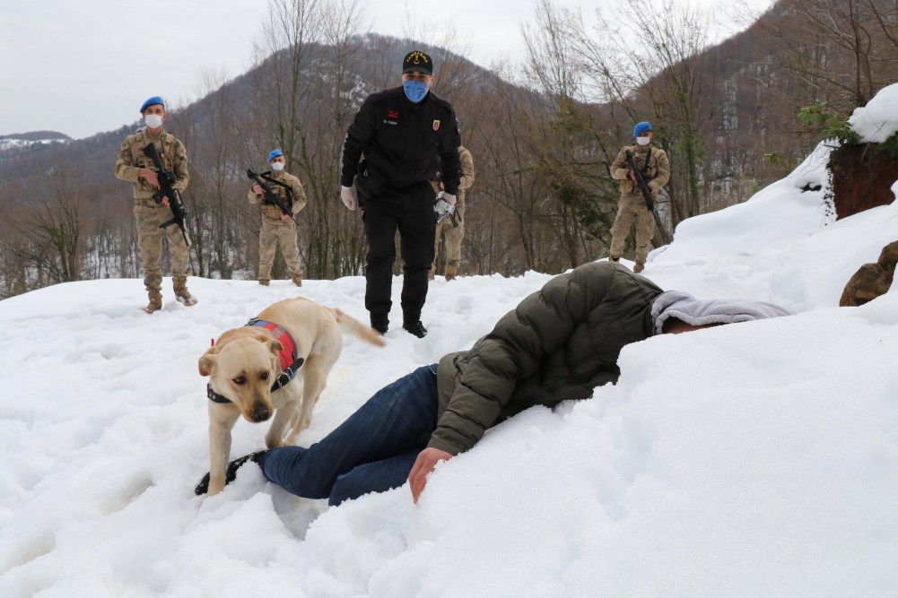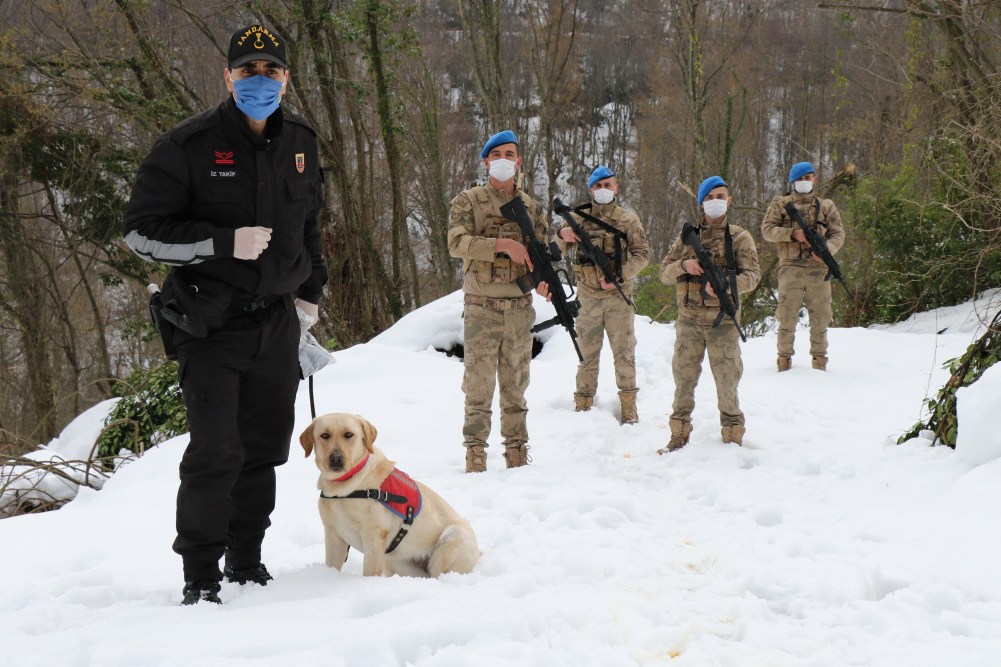Labrador cinsi olan Taç isimli iz takip köpeği Zonguldak İl Jandarma Komutanlığı envanterinde hizmet veriyor. Kayıp vatandaşlar ve kaçan düşman unsurları, hırsızlık, kaçakçılık, hudut ihlalleri, sabotaj veya operasyonlarda koku izini takip ederek, faillerin yerini tespit etmek maksadıyla kullanılan iz takip köpeğinin kokuyu ayırt etme duyusu yüksek. İzi sürülecek kokuyu 12 saat eskiliğe ve 5 kilometre mesafeye kadar diğer kokulardan ayırt ederek takip etme imkan ve kabiliyetine sahip olan Taç, Zonguldak İl Jandarma Komutanlığı emrine 2020 yılında İz Takip Köpeği olarak atandı. Atandığı günden bu güne kadar toplamda 25 görev icra etti. Görevlerde 4 sağ, 2 ölü vatandaşın bulunmasında ve icra edilen tanıtıcı ve caydırıcı görevlerde faaliyette bulundu. Senaryo gereği ormanlık alanda bir gencin kaybolduğu ihbarını alan ekipler bölgede arama başlattı. Gencin düşürdüğü beresinin koklatıldığı Taç, kısa sürede kayıp şahsa ulaşmayı başardı. Zonguldak İl Jandarma Komutanlığı Asayiş Komando Birliği ekipleri de tatbikatta Taç'ın yerini tespit ettiği kayıp vatandaşa ilk müdahaleyi yaparak sağlık ekiplerine teslim etti.