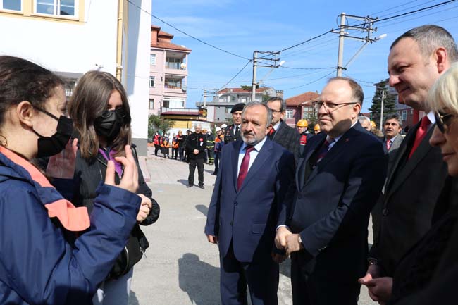 İbrahim Fikri Anıl Ortaokulu'nda gerçekleştirilen tatbikata Zonguldak Valisi Mustafa Tutulmaz, Belediye Başkanı Ömer Selim Alan, İl Emniyet Müdürü Fahri Aktaş, İl Jandarma Komutanı Albay Cezmi Yalınkılıç, Bülent Ecevit Üniversitesi Rektörü Mustafa Çufalı, İl Milli Eğitim Müdürü Züleyha Aldoğan katıldı. Tatbikat son öğrencinin binadan tahliyesiyle tamamlanmış oldu.