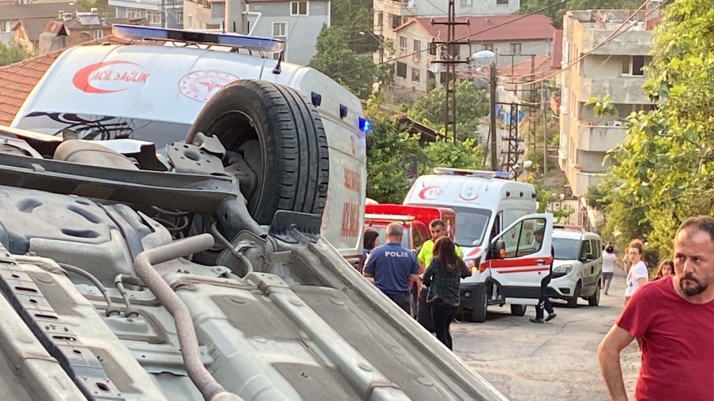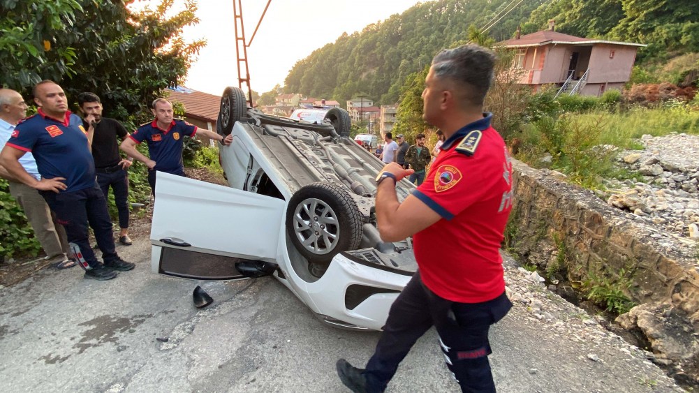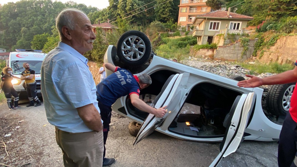 Zonguldak’ta kontrolden çıkan otomobil takla attı. Ters dönen araçtaki iki kişi yara almadan kurtuldu.