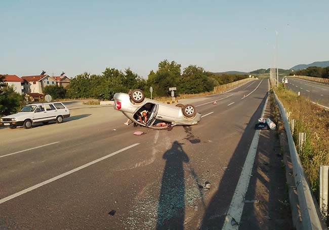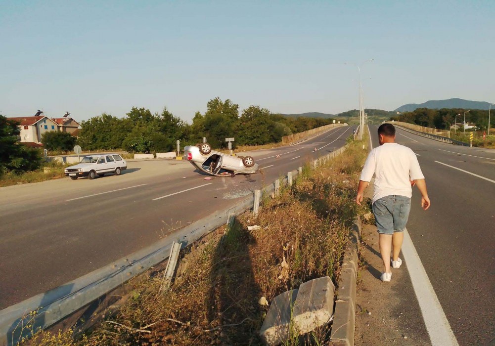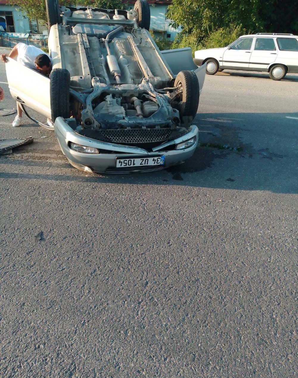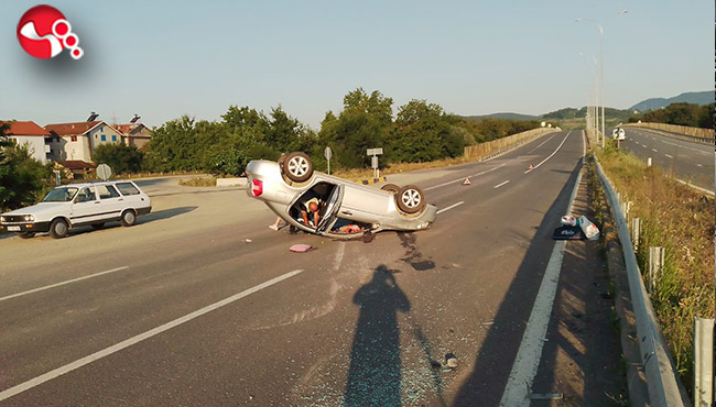 Zonguldak’ın Çaycuma ilçesinde bir otomobil seyir halinde gittiği esnada sürücüsünün direksiyon hakimiyetini kaybetmesiyle önce bariyerleri aştı, karşı şeride geçerek takla attı. Kazada 3 kişi yaralandı.