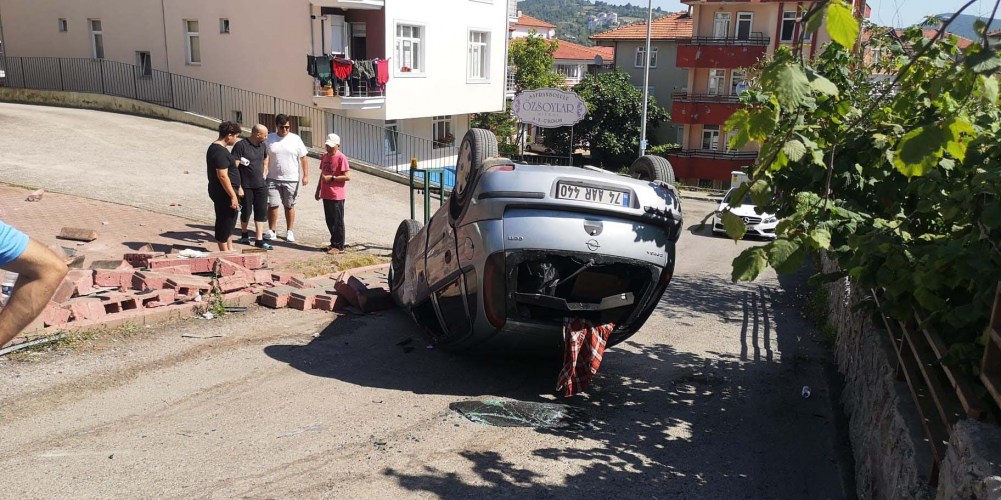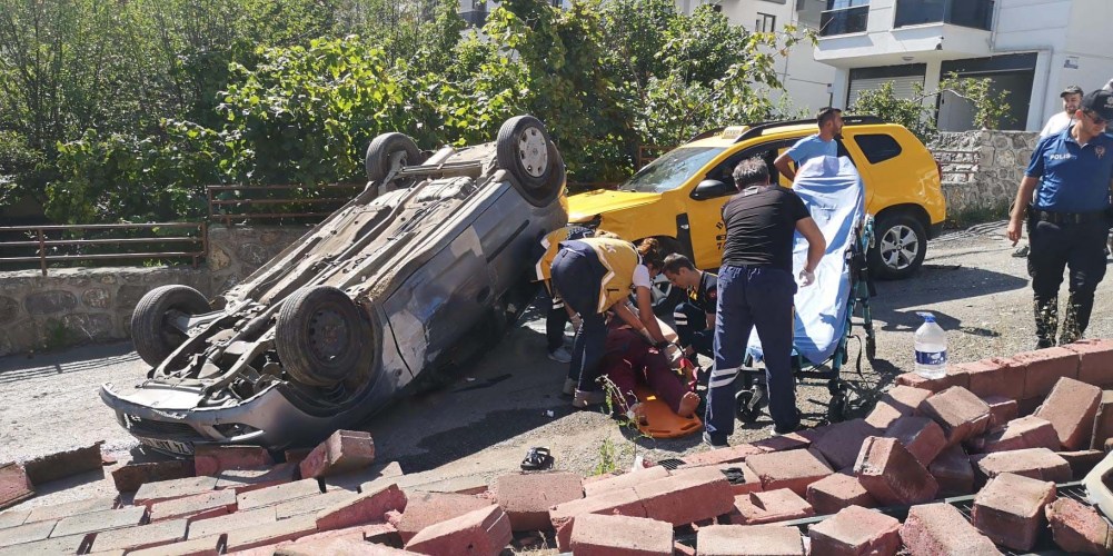 Kaza, Bartın'ın Demirciler Mahallesi Zübeyde Hanım Caddesi'nde meydana geldi. Sürücünün ismi öğrenilemeyen 74 T 0143 plakalı ticari taksi ile çarpışan Ş.Ş. isimli kadın sürücünün kullandığı 74 AAR 440 otomobil önce bir sitenin duvarına çarptı ardından takla attı.