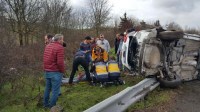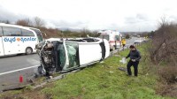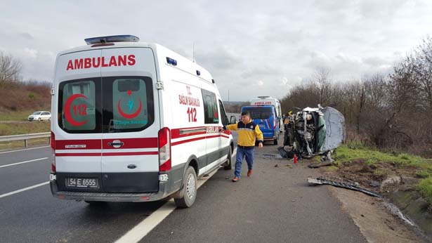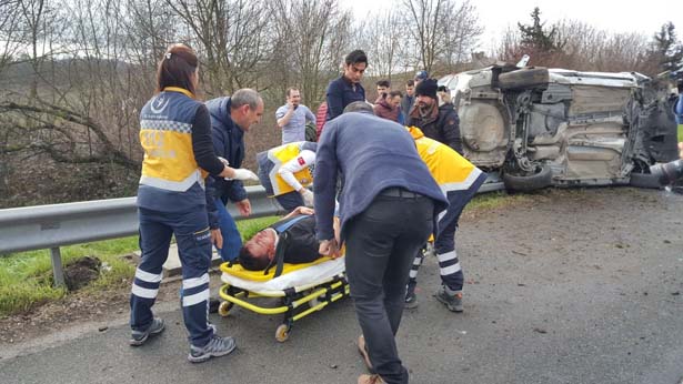 Düzce TEM Otoyolu Büyük Melen mevkiinde hafif ticari araç takla attı 3 kişi yaralandı.
