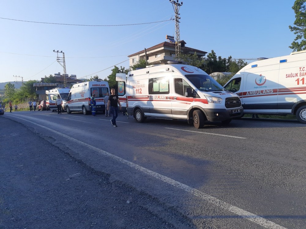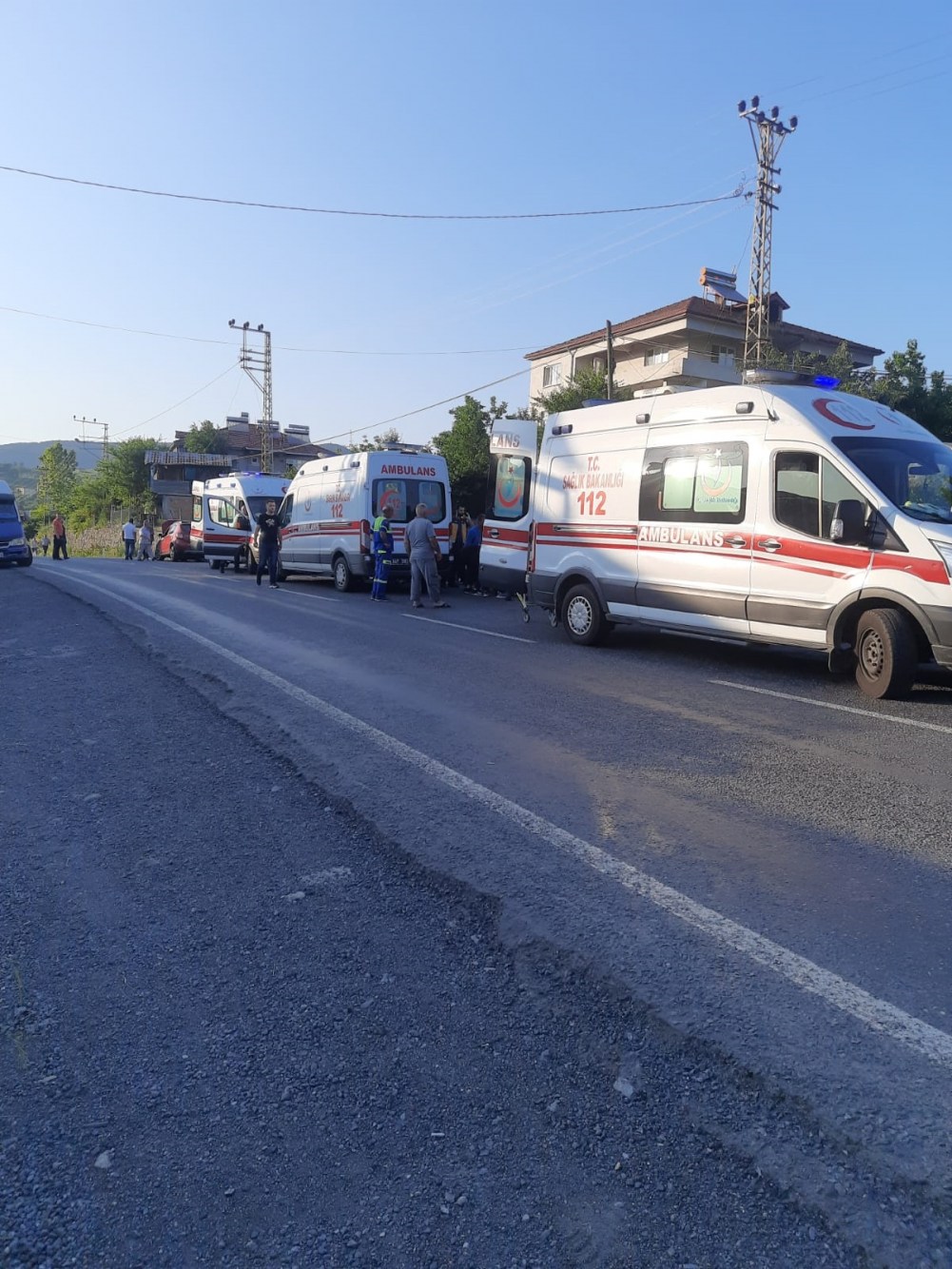 Karadeniz Ereğli-Ormanlı karayolu Yazıcılar köyü mevkisinde iplik fabrikasında çalışan işçileri taşıyan M.T. idaresindeki 34 ZR 3500 plakalı midibüs ana yola çıktığı sırada karşı yönden gelen F.Ç. idaresindeki 67 AB 743 plakalı otomobil ile çarpıştı.
