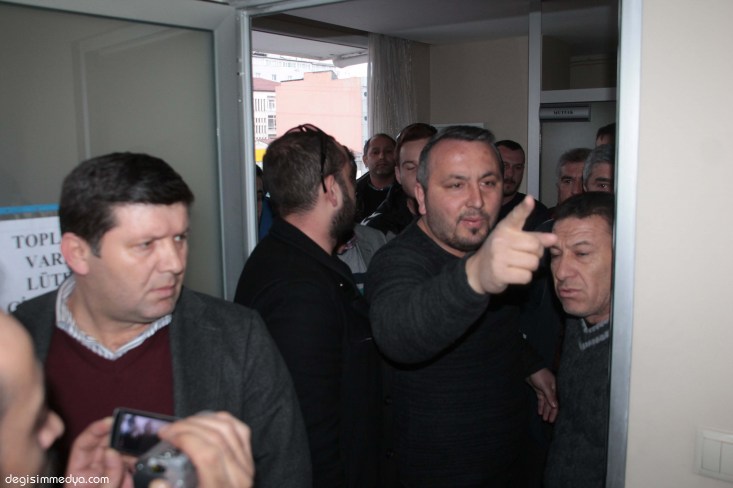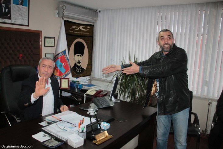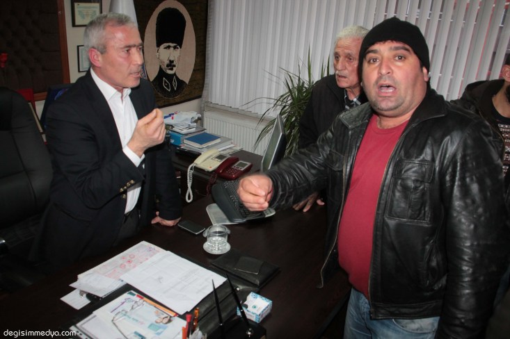 Başkan Cevdet Civelek'le yapılan görüşmede sert tartışmalar yaşandı. Odaya gelen polis, makam odasındaki taksi sahiplerini dışarıya çıkardı.