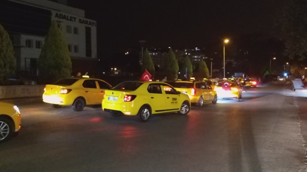Zonguldak’ın Ereğli ilçesinde taksiciler toplanarak ‘Barış Harekatına’ destek amacıyla konvoy düzenledi. Taksiciler konvoyun son durağı olarak Karadeniz Bölge Komutanlığının önünde tekbir getirdiler.