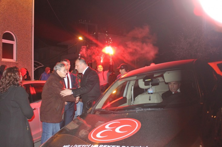 karşıladılar. Vatandaşları tek tek selamlayarak kahvehaneye giren MHP heyeti,