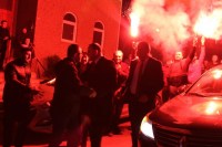 dışarıya çıkan Şeker'e mahallelinin bir de havayi fişek sürprizi vardı.