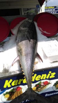 Ereğli Bozahane balıkçı tezgahında 2 metre boyunda ki Orkinos balığını görenler hayrete düşüyor. Ereğli açıklarında yakalandığı öğrenilen Orkinos balığı Karadeniz Balıkçısı tezgahında yerini aldı. Karadeniz Balıkçısı Yusuf Baykan, balığın istenirse parça parça istenirse tamamının satışa sunulduğunu söylediği konuşmasında , Orkinos balığının bir çok rahatsızlığa da iyi geldiğini söyledi.