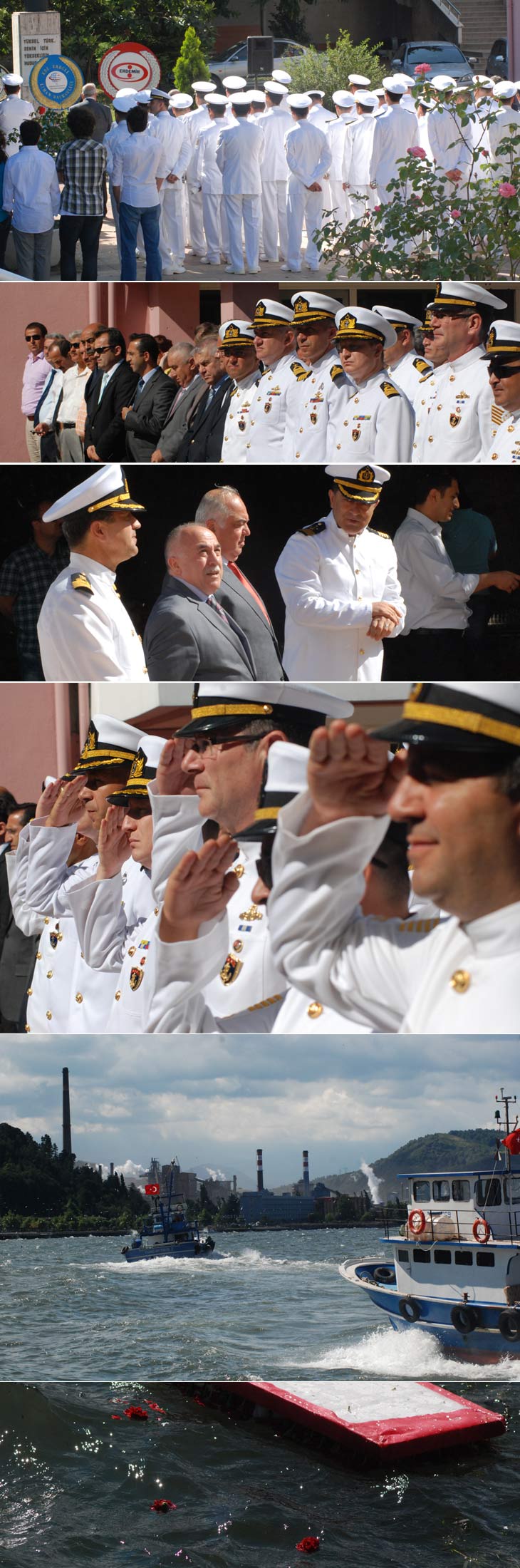 'Az sayıda gazetecinin' takip ettiği törenlere; Ereğli Kaymakamı İbrahim Çay, Ereğli Belediye Başkan Yardımcısı Özkan Özyağcı, Karadeniz Bölge ve Garnizon Komutan Vekili Deniz Piyade Albay Bahadır Yalçın, CHP İlçe Başkanı Hayrettin Kartal, Ereğli Demir ve Çelik Fabrikaları Grup Limanlar Yönetim Direktörü Tunca Özenci, Batı Karadeniz Deniz Ticaret Odası Meclis Başkanı Ali Doğru, İlçe Milli Eğitim Müdürü Mehmet Naci Kılıç, Hatice Erdem Denizcilik Anadolu Lisesi Müdürü Yaşar Yavuzdeğer bazı daire müdürleri ile askeri erkan katıldı.
