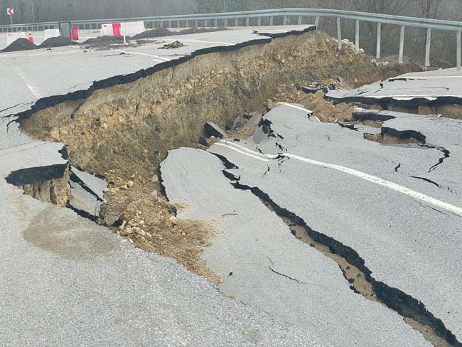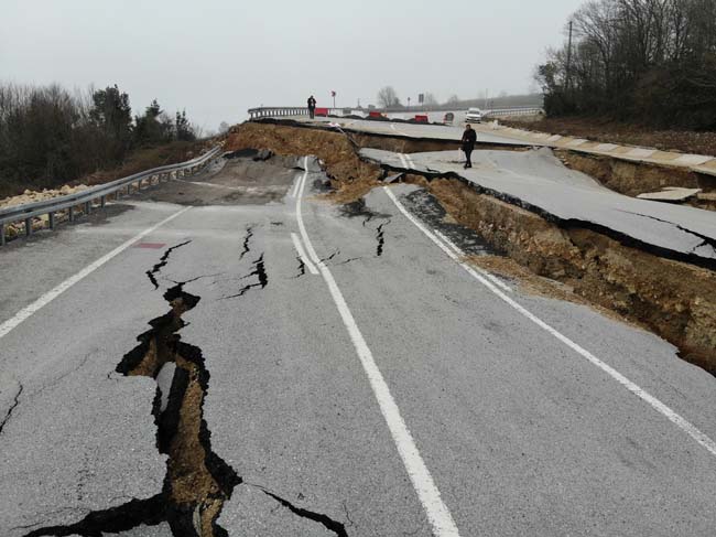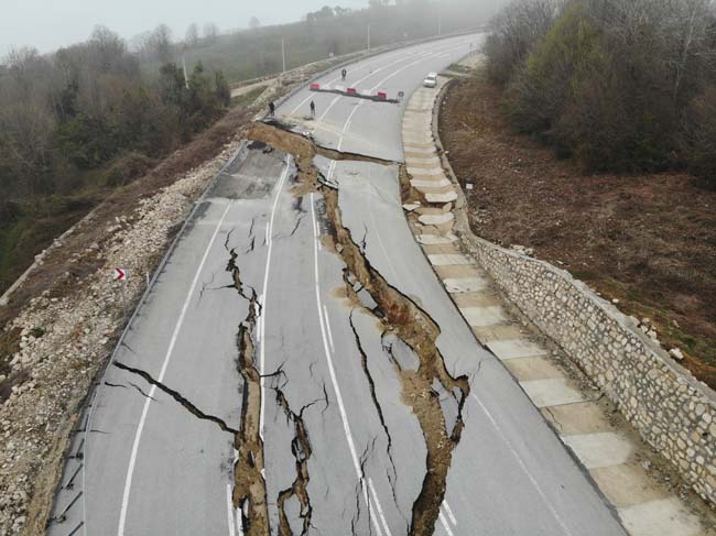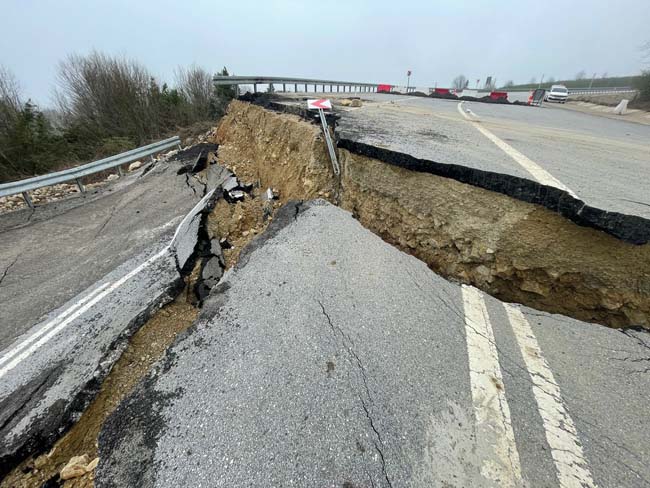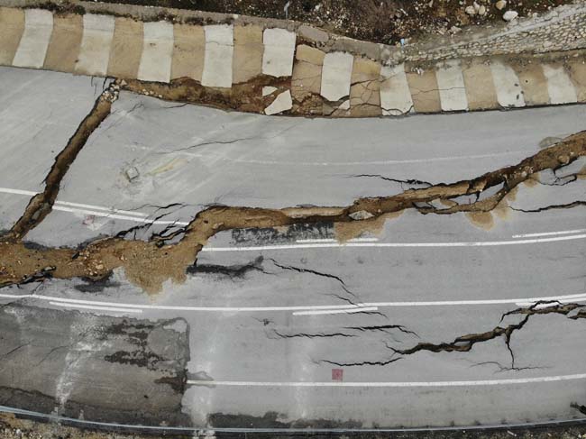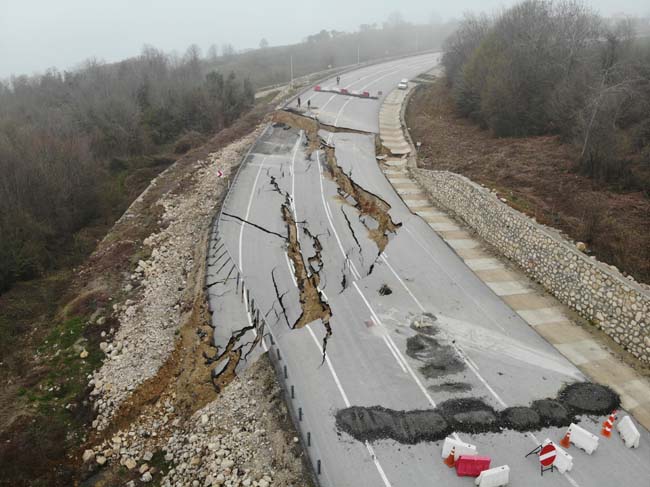 Düzce’de geçtiğimiz günlerde etkili olan sağanak ve kar yağışı ile birlikte Karadeniz’i İstanbul’a bağlayan yolda geçtiğimiz ay çatlaklıklar meydana geldi. Çatlaklık sebebi ile karayolları ekiplerince yol tek şeritli trafiğe kapatıldı. Diğer şeritten trafik verilirken, Edilli mevkiindeki kısım tamamen çöktü. Derin yarıkların oluştuğu bölgede asfalt kağıt gibi yırtıldı. Bölge drone ile görüntülendi. Görüntüler dehşeti adeta gözler önüne serdi.