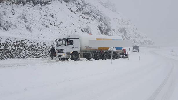 Karadeniz Ereğli'de bölgeyi etkisi altına alan kar yağışı, ulaşımda aksamalara yol açtı. Ereğli-Zonguldak arasında seyretmekte olan bir tanker kayarak yoldan çıktı.