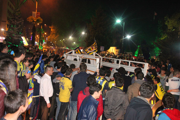 Karadeniz Ereğli'de Fenerbahçeli taraftarlar takımlarının şampiyonluk kutlaması için sokaklara döküldü. Polisler tarafından alınan güvenlik önlemleri içerisinde kutlama yapan taraftarlar, araçları salladı, davul zurna eşliğinde sloganlar atarak şampiyonluğu Başkanları Aziz Yıldırım'a armağan ettiklerini söyledi.
