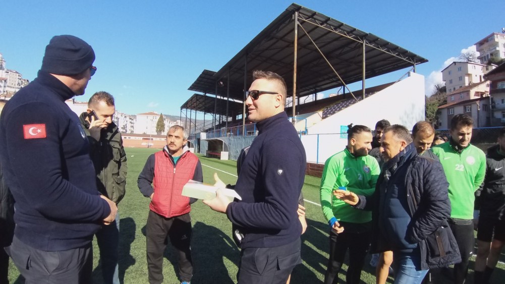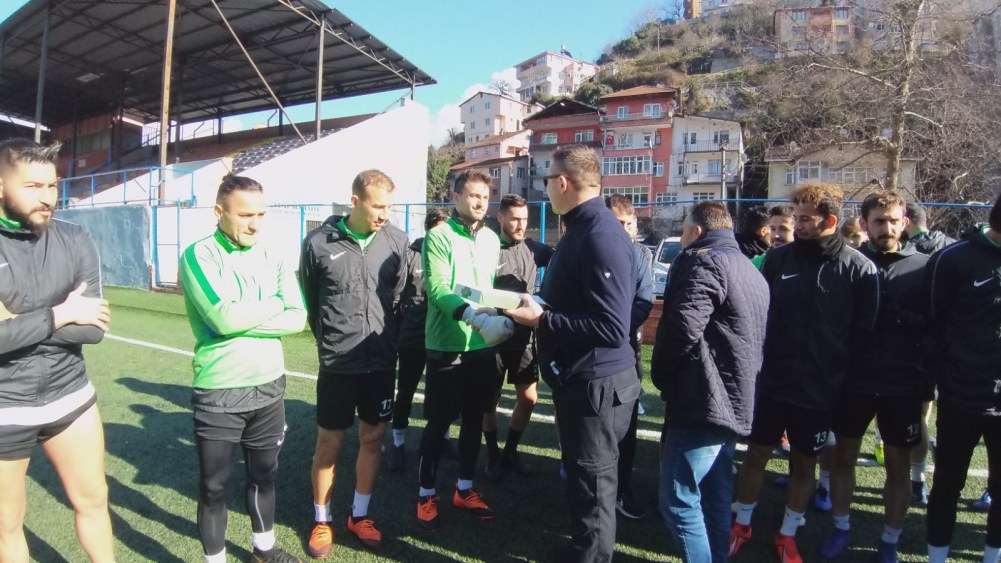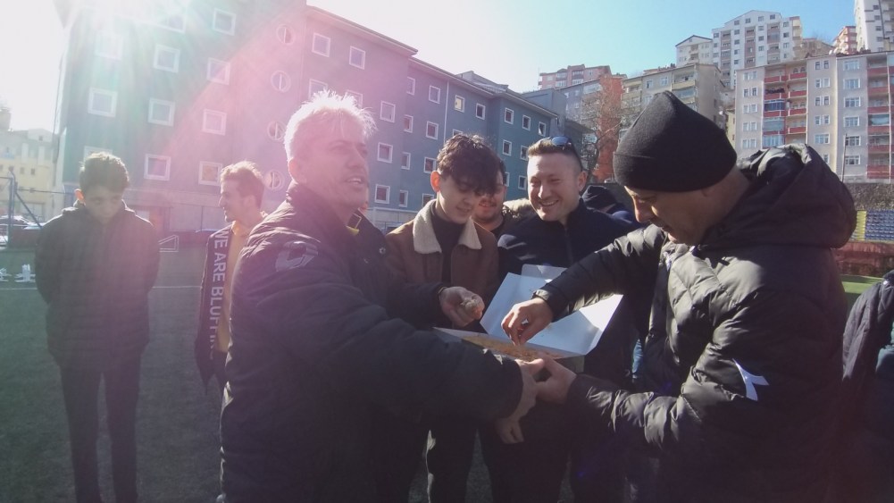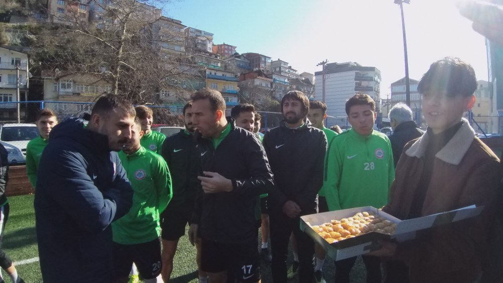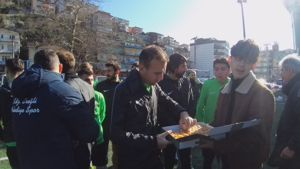 Genç Ereğlililer Taraftar Grubu Tribün Liderleri Burhan Önder, Adem Akman ve taraftarlar 2 Şubat Pazar günü Devrek Belediyespor ile Ereğli Belediyespor’un karşılaşması öncesinde Ereğli belediye sporlu oyunculara baklava ikram ettiler.