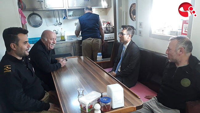 Ulaştırma ve Altyapı Bakanlığı'nca gönderilen tarak gemisinin Alaplı Balıkçı Barınağı ağzı ve barınak içi dip kumlanmasını temizleme çalışmalarını bir süre takip eden Kaymakam Yılmaz, yetkililerden de konuyla ilgili bilgi aldı.