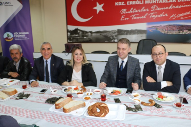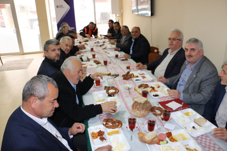 ve beraberindeki heyet sabah saatlerinde muhtarlarla kahvaltılı toplantıda bir