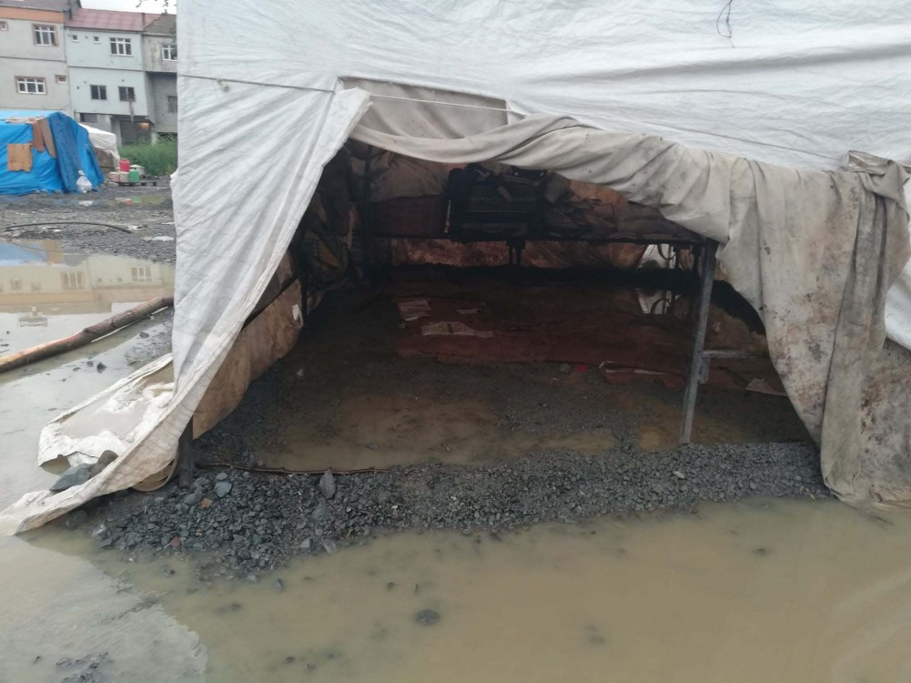 Zonguldak’ta etkili olan sağanak yağış nedeniyle mevsimlik tarım işçilerinin kaldığı çadırlar sular altında kaldı.