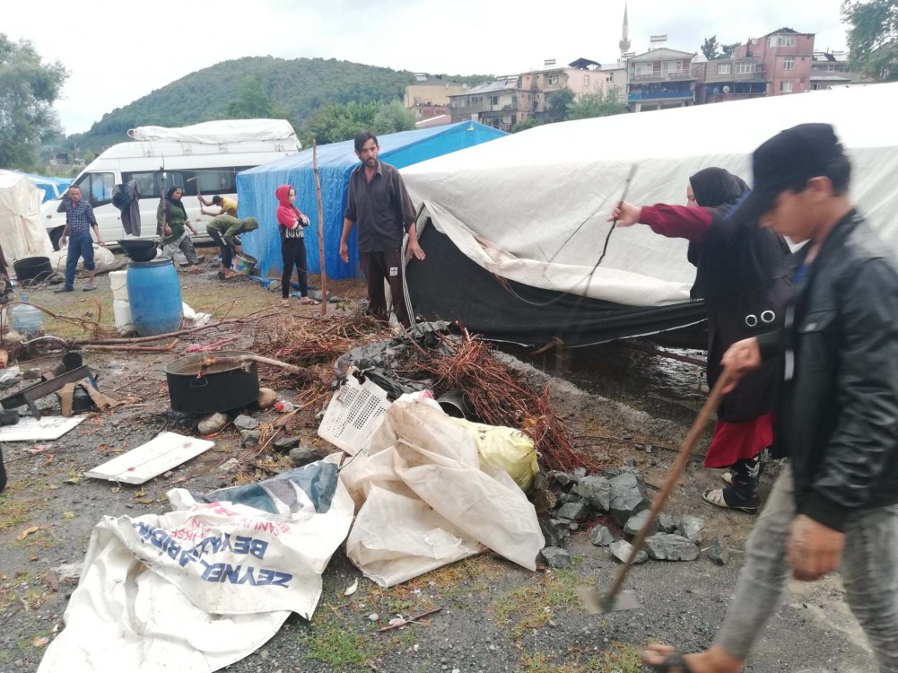 30 yaşındaki Mehmet Bağcı isimli işçi ise, Şanlıurfa'dan 3 gün önce geldiklerini söyleyerek, “Bugün ilk defa fındık toplamaya gittik ve akşam geldiğimizde ise Çadırlarımızın her yeri suyla doldu. Eşyalarımız da hep battı. Ne unumuz kaldı ne de giyecek elbisemiz" diye konuştu.