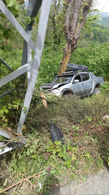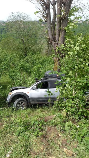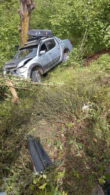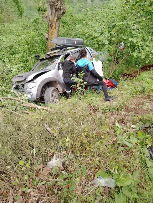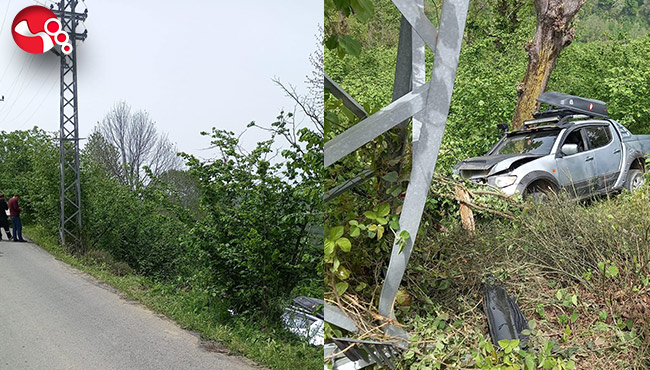 Zonguldak’ın Alaplı ilçesinde elektrik direğine çarptıktan sonra fındık tarlasına uçan pikap bulunan 2 kişi yaralandı.