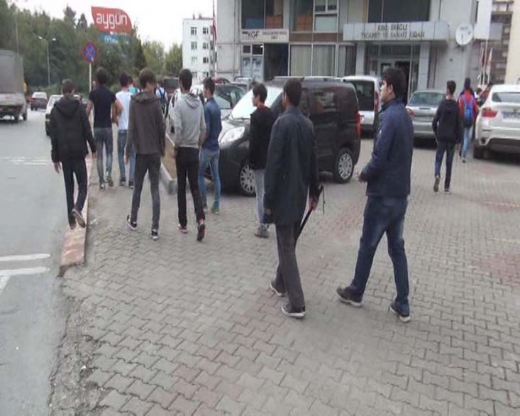 ve resmi ekipleri kavga etmek üzere olan gençleri uyararak dağılmalarını