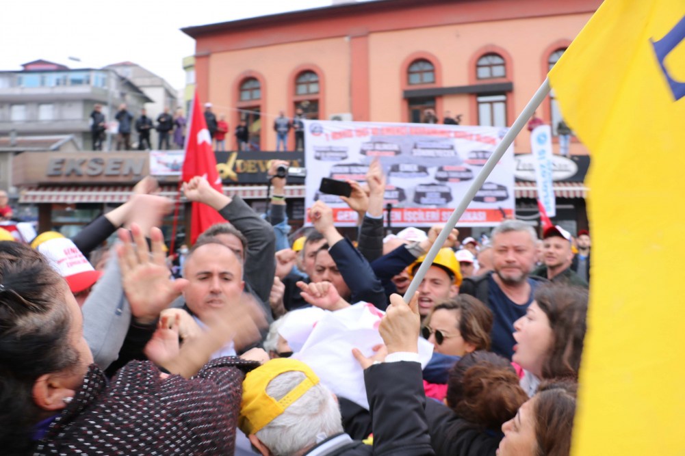 Eğitim Sen bayrakları ile alana giren Zonguldak Kadın Platformu üyeleri sahnede sunuculuk yapan Gülhan Yıldız'a tepki gösterdi. Sendika üyesi kadınlar Yıldız'ın sahneden inmesiyle alana girdi. Gülhan Yıldız'ın yeniden sahneye çıkarak sunuculuğa devam etmesi üzerine tartışmalar sahne önünde devam etti. Bu sırada diğer sendikaların üyeleri Kadın Platformu Üyeleri'nin tutumuna tepki gösterdi. Yaşanan gerginlik fiziki müdahaleye dönüştü. Birbirine giren sendika üyelerini yine alanda bulunan diğer sendikacılar ayırdı. Tarafların yatıştırılmasının ardından kutlamalar devam etti. Kadın Platformu Üyeleri ise kutlamaların yapıldığı alanı terk etti.